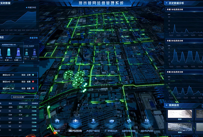 建立二三維可視化管網(wǎng)一張圖,實(shí)現(xiàn)實(shí)時(shí)動(dòng)態(tài)監(jiān)測(cè),并基于大數(shù)據(jù)技術(shù)分析管網(wǎng)缺陷、評(píng)估排水運(yùn)行狀態(tài),有效提升城市排水系統(tǒng)的監(jiān)管、處理能力,保證城市排水設(shè)施正常運(yùn)行。
